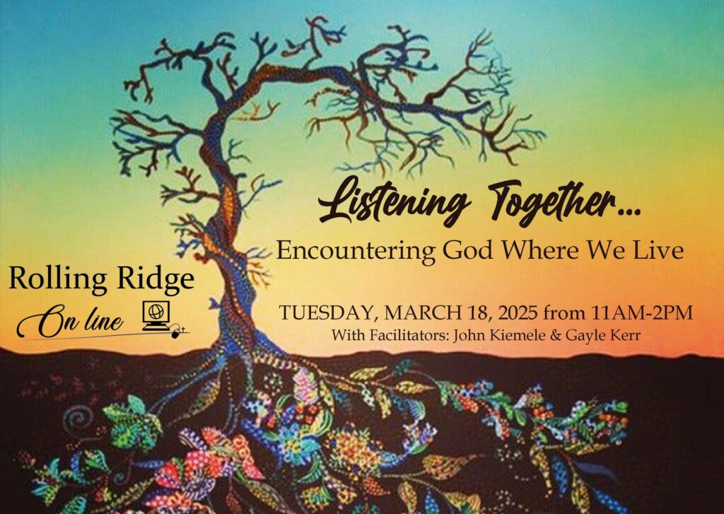 Registrations are now open for our online continuing education event “Listening Together … Encountering God Where We Live” on Tuesday, March 18, 2025, from 11:00 a.m. to 2:00 p.m. eastern.