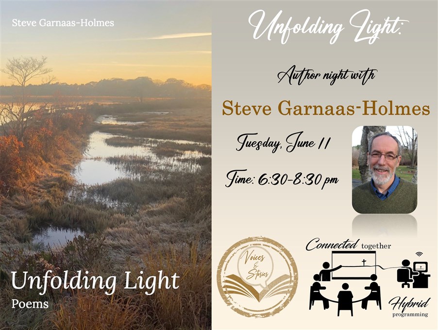 We invite you to a book reading and author night with Rev. Steve Garnaas-Holmes on Tuesday, June 11th as he introduces his new book, Unfolding Light. Unfolding Light is a collection of 184 poems gathered from 45 years of writing. They are part of Steve’s practice of wonder. They include reflections on daily life, scripture passages, walking in the woods, contemplative prayer, the natural world, dogs, bees, and driving across Montana with a peach. They’re rooted in Steve’s observation that the world is a thin place, filled with mystery, the divine presence, tears of every kind, and abundant blessing.