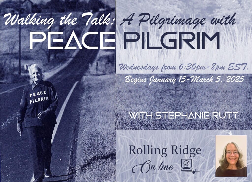 During this 8-week pilgrimage, we’ll walk alongside Peace Pilgrim and see what some of her extraordinary experiences on the road have to reveal to us about our own journeys. On Wednesday evenings from 6:30-8:00 pm eastern, beginning January 15th thru March 5th, we’ll peer lovingly into her inner life where she describes the three key areas of spiritual growth: preparations, purifications and relinquishments. Our pilgrim guide, Stephanie Rutt, will also introduce us to the Jesus Prayer in Old Slavonic, the constant practice of another peace pilgrim chronicled in the Way of a Pilgrim from the Christian Orthodox tradition.